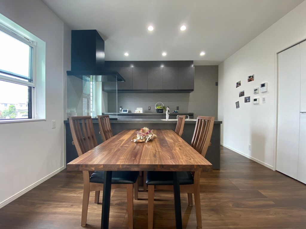心地がいいから。私らしく居られる家。家づくりのスタートの間取りから内装までとことんこだわったお施主様。玄関正面の壁には木を施工。間接照明を入れることであたたかくおしゃれな空間に。シューズクローゼットも収納力抜群。リビングに入るとまず目に入る格子!階段の目隠しとして採用。デザイン性も◎小上がりの和室も隣接しており腰かけても良し!お子様達の遊び場にも。1階2階と収納力のあるWICがあり外物干しと繋がっていたり、洗面所・脱衣室と分けた間取りにすることで家事も楽々。気兼ねなく使用することが出来ます。ママ目線での水まわり動線。子供室は少し小さめにしましたが収納や造作カウンターもあり十分なスペースになりました◎ガレージもこれから自由にDIYしていくのが楽しみですね♪お施主様の想いの詰まった大切なお家。耐震性能・断熱性能もばっちりな長期優良住宅の完成です。
